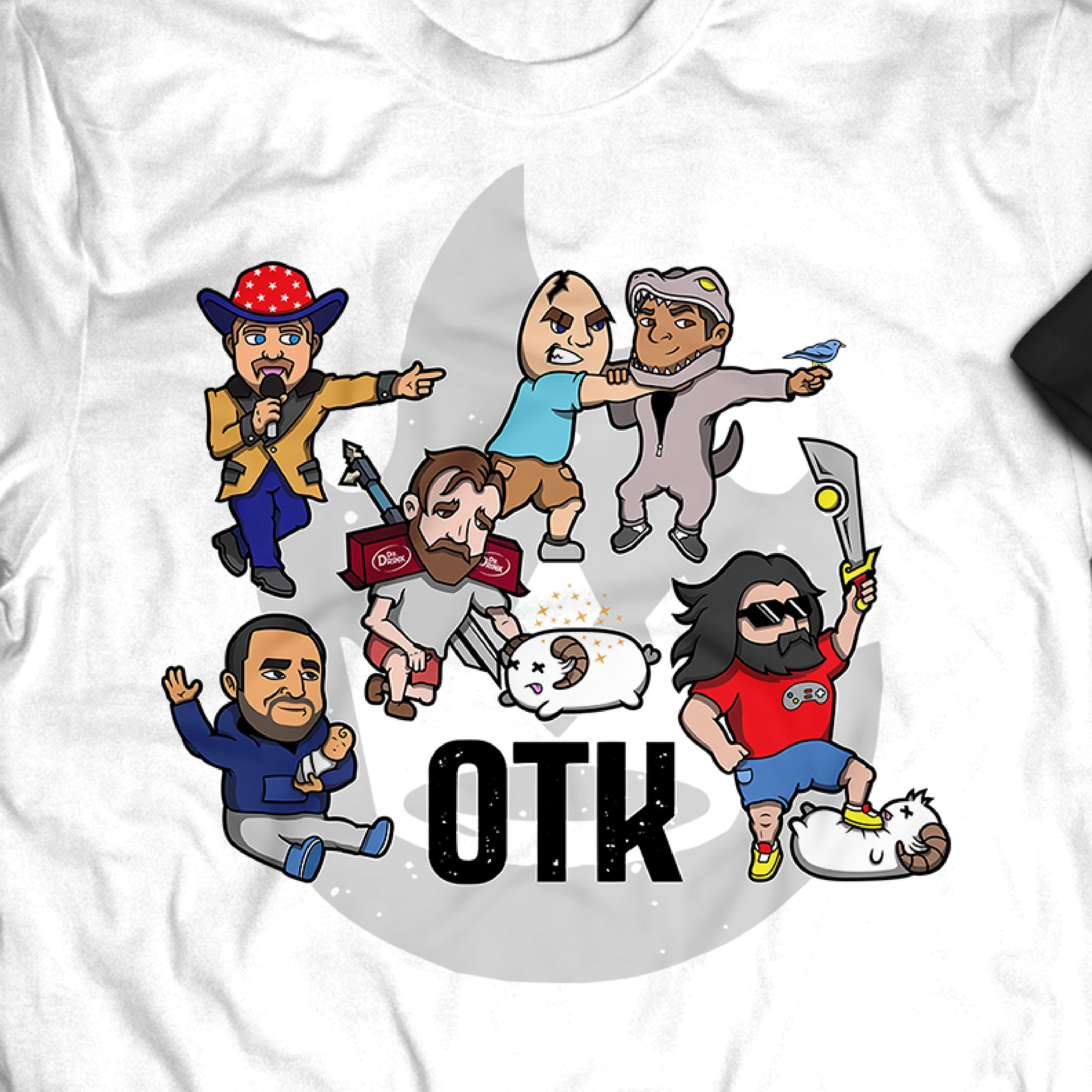 Apparel merchandise design for the Twitch streaming organization “One True King.” Illustrative designs utilize the organization’s existing logo creatively, while showcasing the vibrant personalities of these Twitch streamers.